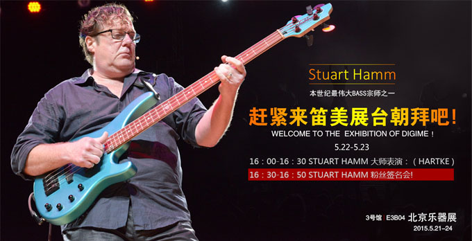 During the 2015 May Beijing International Musical Instruments Exhibition International bass guitarist Stu Hamm arrived in Beijing Chinese.