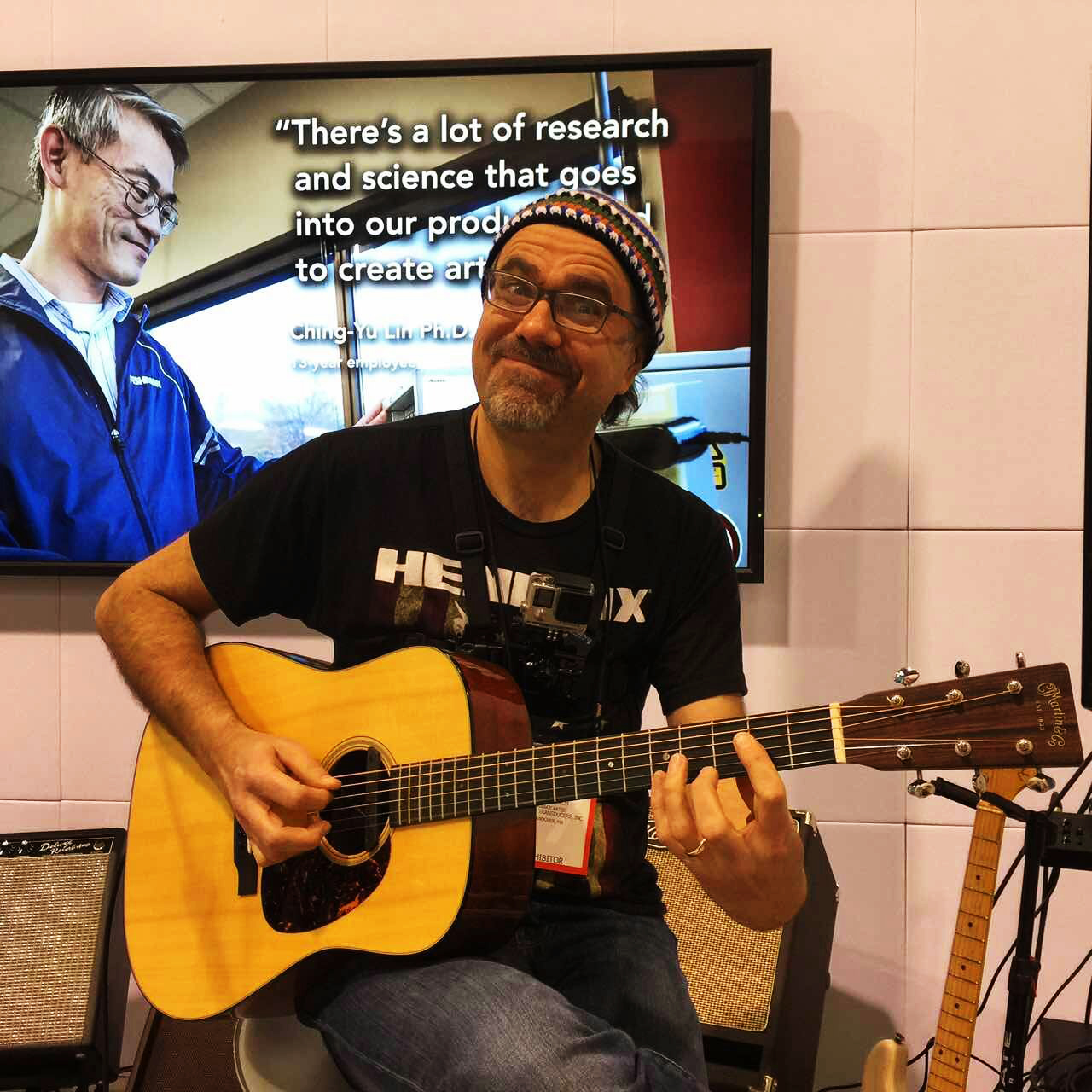 Fishman著名艺术家 Greg Koch 在演示 Fishman的拾音器跟 SA330X PA系统