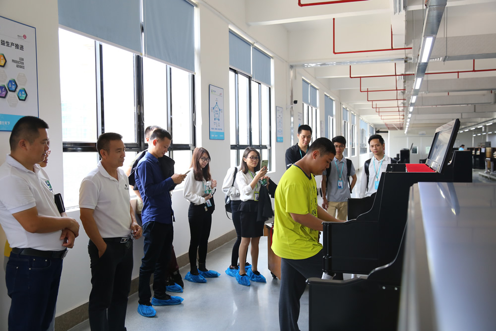 早上,龙健集团副总裁周兴光先生带领笛美团队走进奥德曼钢琴厂进行实地参观.