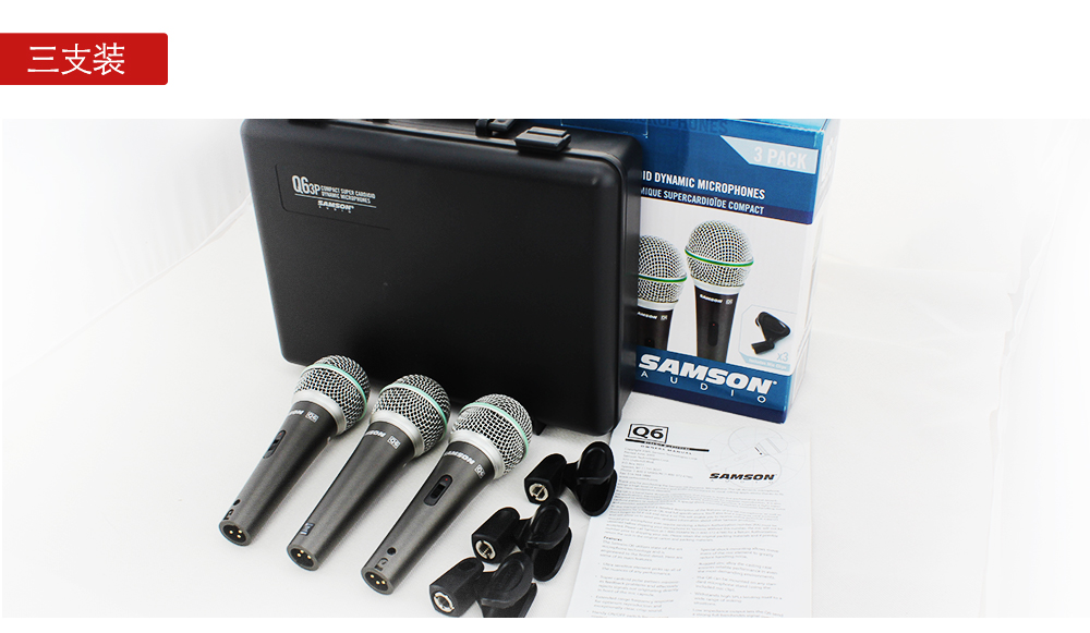 SAMSON Q6系列还有单支裝和三支套装可供选择,需要注意的是单支张的带一条5.8米的卡侬线。而三支装虽然不带线,但是却贴心地送一个便携箱,想去哪里就去哪里。