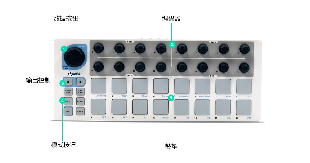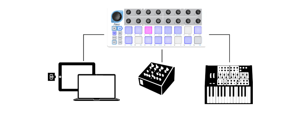 BeatStep是一个16步进音序器,可用于创建各种乐句,然后发送到模拟合成器,MIDI鼓机,MIDI键盘设备,或电脑程序。