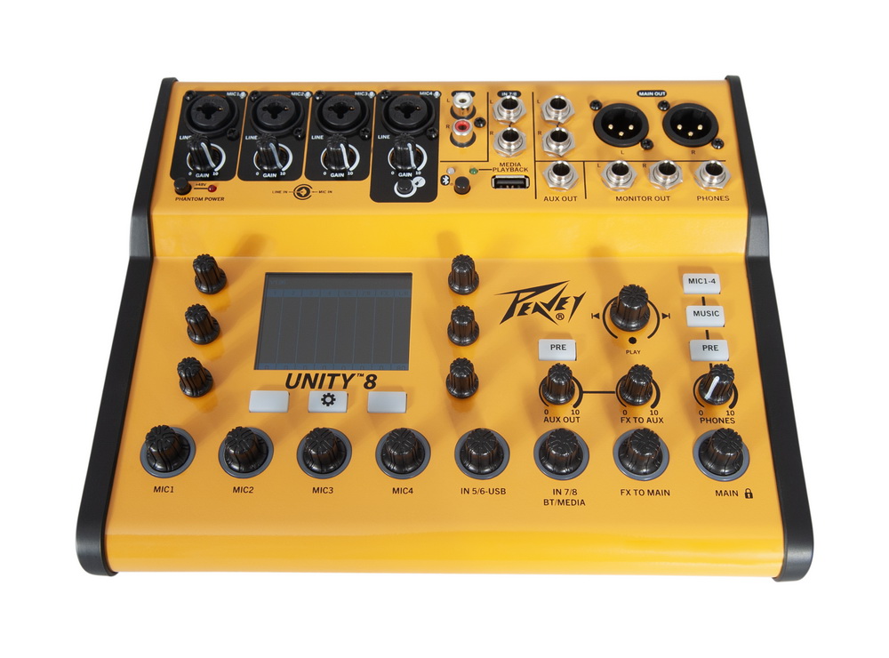 Peavey UNITY 4/6/8 数字调音台,面向直播与现场双场景应用打造,融合Peavey数十年专业声学技术背景与移动互联需求,支持 OTG 直连、蓝牙输入及内录功能,多通道效果控制与独立EQ调节,UNITY 8 进阶具备自动混音及啸叫抑制,让声音处理更高效、清晰。从桌面制作、手机直播到小型演出,Peavey UNITY兼顾便捷性与专业度,为混音、录制与数字传输等多场景使用提供稳定支持。